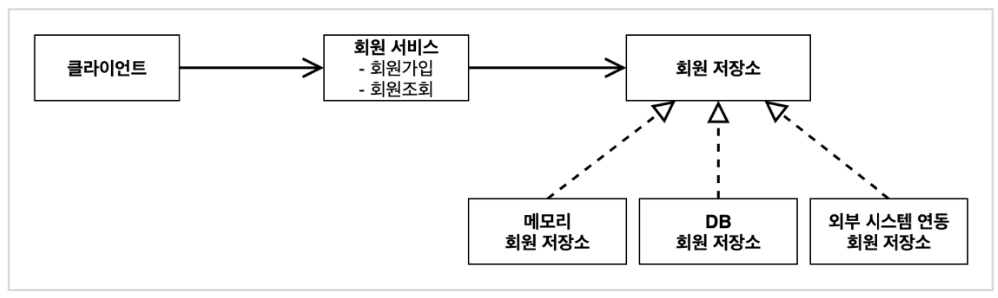 그럼 회원 저장소가 바뀌었을 때 회원 서비스에 대한 내용도 변경해야하는 수고로움이 생겨서?