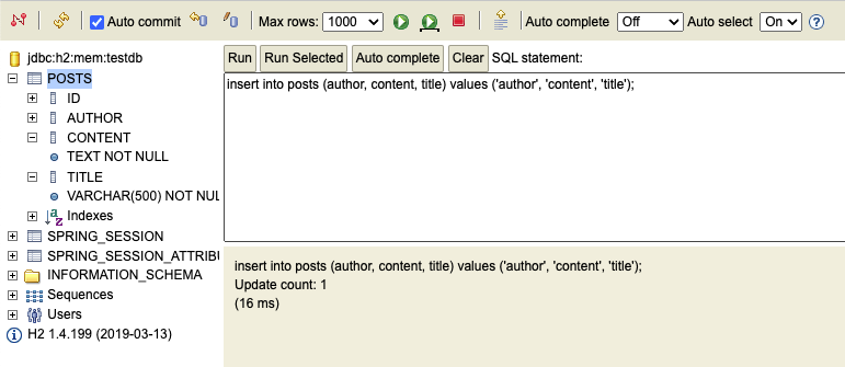 - save : 테이블 posts에 insert/update 쿼리를 실행