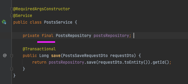 - @NoArgsConstructor : 기본 생성자 자동 추가