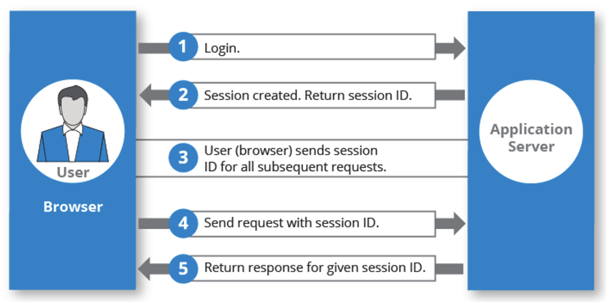클라이언트가 웹서버에 처음 접속하면 해당 클라이언트에 대한 유일한 Session ID를 발급하고 클라이언트의 세션 정보는 서버 내부나 데이터베이스와 같은 곳에 저장한다. 클라이언트가 이어서 해당 Session ID를 가지고 요청을 했을 때 서버는 내부적으로 Session ID를 key로 가지는 세션 정보를 기반으로 응답하게 된다.