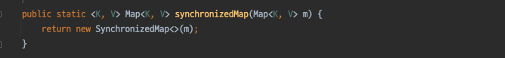 - 자바의 컬렉션 프레임워크는 Collections의 정적 팩터리 메서드를 통해서 핵심 인터페이스에 동기화등의 기능을 덧붙인 유틸리티 여러 구현체를 제공한다.