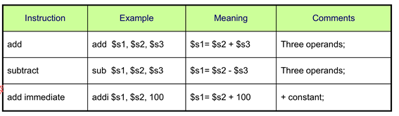 연산자 예시 ) add $s1, $s2, $s3