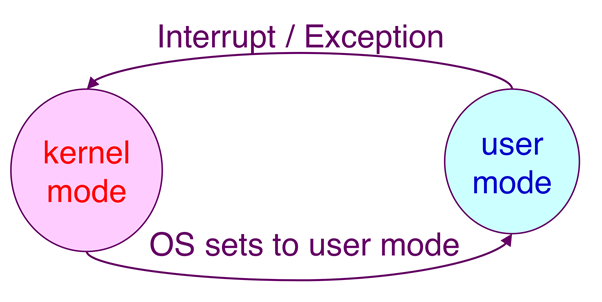 - 사용자 프로그램에게 CPU를 넘기기 전에 mode bit을 1로 set