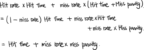 * Average memory access time = Hit time + Miss rate x Miss penalty