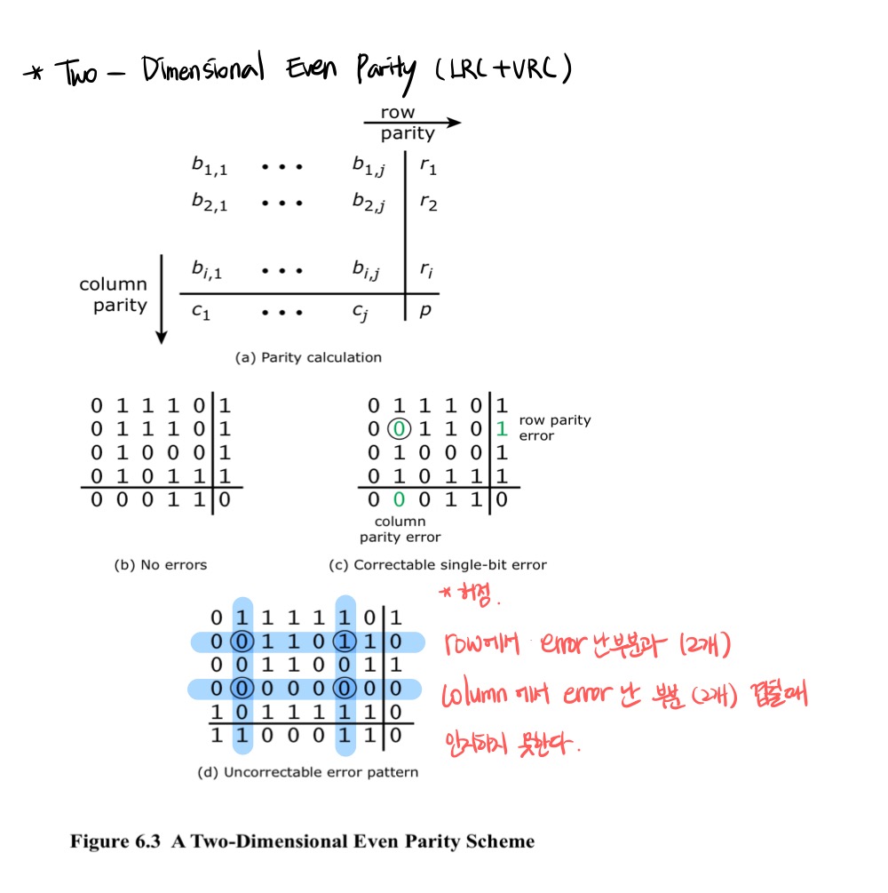 • ( even number ) 비트 오류가 감지되지 않음 / 짝수개의 비트 오류는 감지 X