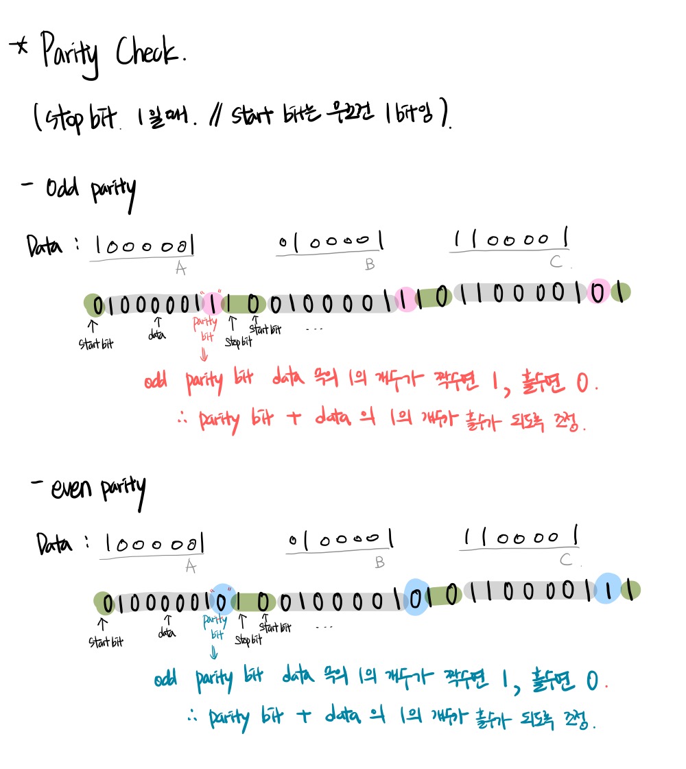 Parity check 하여 data를 보낼 때 다음과 같이 전송된다.