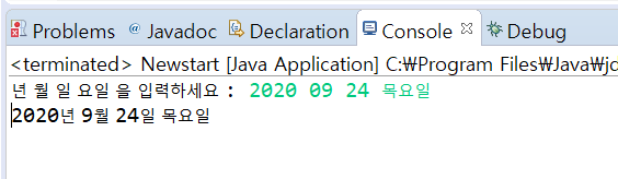 System.out.print("년 월 일 요일 을 입력하세요 : ");